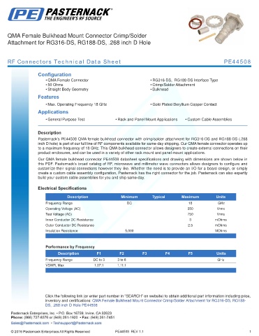 this PDF. Pasternack’s broad catalog of RF, microwave and millimeter wave connectors allows designers to configure and
