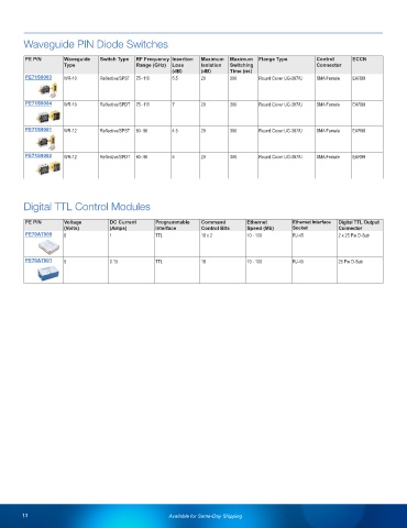 PE P/N Waveguide Switch Type RF Frequency Insertion Maximum Maximum Flange Type Control ECCN