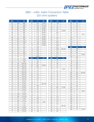 dBm - volts- watts Conversion Table