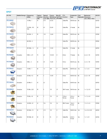 PE P/N Switch Design Frequency Typical Typical Typical Max RF TTL Connector Field Mechanical ECCN