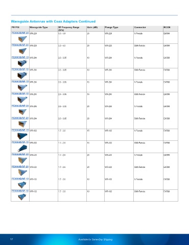 PE P/N Waveguide Type RF Frequency Range Gain (dB) Flange Type Connector ECCN