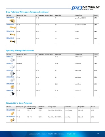 PE P/N Waveguide Type RF Frequency Range (GHz) Gain (dB) Flange Type ECCN
