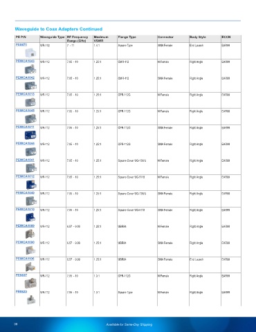 PE P/N Waveguide Type RF Frequency Maximum Flange Type Connector Body Style ECCN