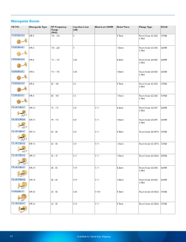 PE P/N     Waveguide Type  RF Frequency   Insertion Loss   Maximum VSWR  Bend Plane  Flange Type  ECCN