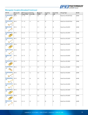 PE P/N Waveguide RF Frequency Insertion Maximum Coupling Directivity Flange Type ECCN