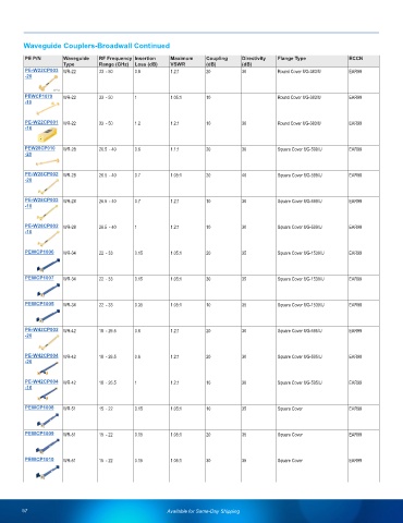 PE P/N Waveguide RF Frequency Insertion Maximum Coupling Directivity Flange Type ECCN
