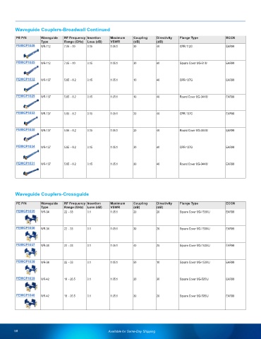 PE P/N Waveguide RF Frequency Insertion Maximum Coupling Directivity Flange Type ECCN