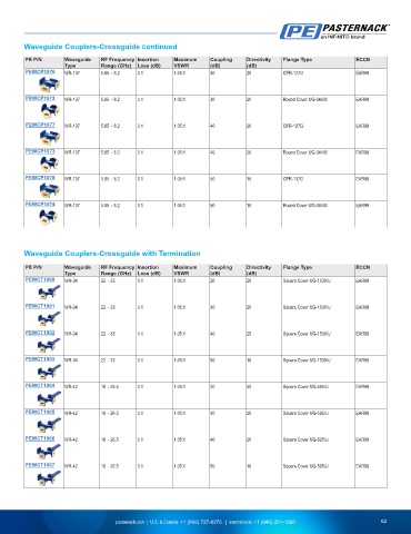 PE P/N Waveguide RF Frequency Insertion Maximum Coupling Directivity Flange Type ECCN