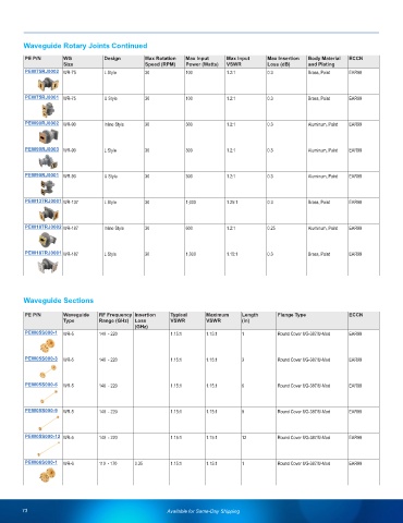 PE P/N Waveguide RF Frequency Insertion Typical Maximum Length Flange Type ECCN