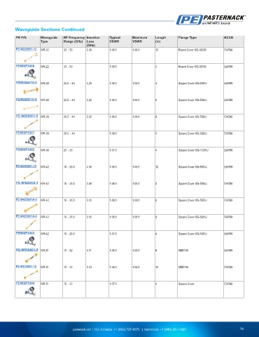 PE P/N Waveguide RF Frequency Insertion Typical Maximum Length Flange Type ECCN