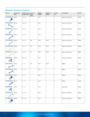 PE P/N Waveguide RF Frequency Insertion Typical Maximum Length Flange Type ECCN