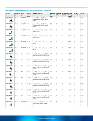 PE P/N Waveguide Switch RF Freq. Actuator/Features Insertion Isolation DC Power Power ROHS ECCN