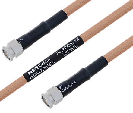 These hi-rel cables are manufactured with MIL-DTL-17 qualified cable, M39012 connectors, AS23053 heat shrink and J-STD soldering. The Pasternack commercial off-the-shelf (COTS) high reliability cable assemblies are 100% tested and include a test report, as well as material lot traceability.