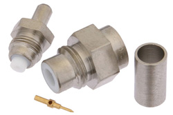 PE3W12192 is a SMC jack to BNC female bulkhead cable using PE-B150 coax. This Pasternack SMC jack to BNC female bulkhead cable assembly uses a 75 Ohm SMC for connector 1 and a 75 Ohm BNC for connector 2.