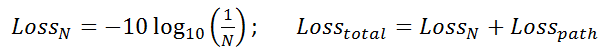 Pasternack's N-Way Power Divider Calculator allows you to calculate the total path loss (in dB) you can expect based on the number of output ports on the RF power splitter device (up to 16 ports).